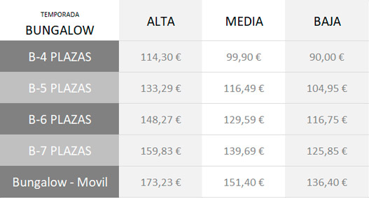 Si vienen acompañados de animal de compañía, el precio de los bungalow se incrementará en 2,55 €/noche